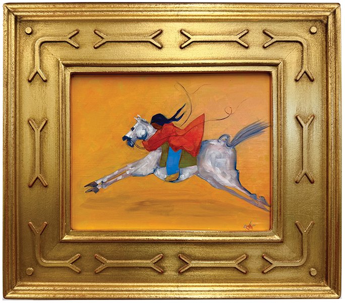 Born in Poitiers, France, Chloé Marie Burk grew up in the French countryside in a family of artists and artisans. Although Burk started creating art at a young age and studied fashion in London and Paris, she had “always known” that something was waiting for her in the United States, and she moved to New York City in 2013. Her work, however, is inspired by the simple way of life and country living of her childhood, hard to find in the bustling city, and she quickly moved westward. Currently, Burk lives in Geyser, Montana, and is interested in preserving the Old West in a modern way through her work. Similar to many others in her field, she has studied and recreated artwork by old Western masters such as W. H. Dunton and Frederic Remington to give her own work, which aims to capture the truth and feeling of the Southwest, a classic feel.