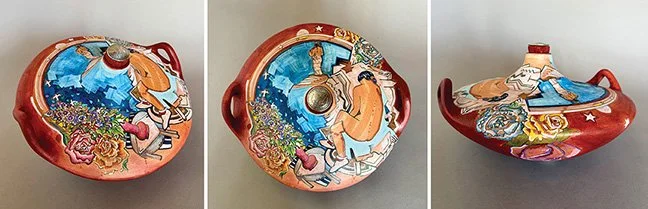 Descended from a long line of revolutionary artists, some of Susan Folwell’s earliest memories are of working in clay with her mother and grandmother. She initially resisted ceramics: “For a long time, I wondered why someone would want to do chores for a living.” Her mindset changed in high school, and Folwell is now known for works addressing contemporary issues, bridging humor, history, and popular culture. She emphasizes the importance of tradition, which she asserts, “is living history, and I am a part of that.” In addition to drawing from pop culture and Santa Clara tradition, Folwell has studied the Taos Society of Artists and created a series of works that respond to paintings by TSA members.