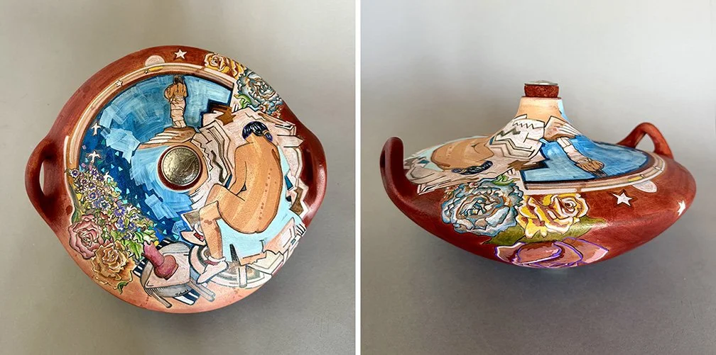 “I drew inspiration from the Taos Society of Artists while designing this canteen. During the process, my uncle passed away. He was born and raised in Santa Clara Pueblo and was a potter, and this piece became a way to honor both his life and his cultural traditions.